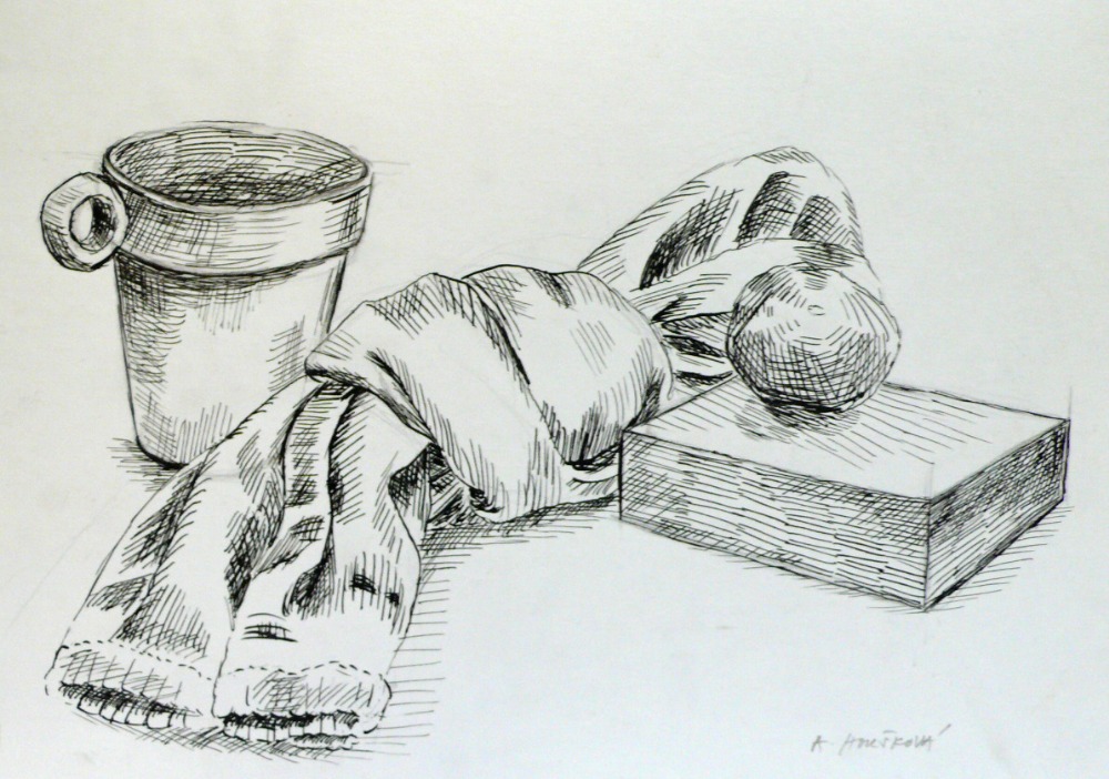 2. 11.—> 16. 11. – GESTICKÁ MALBA – M – tuš, akryl- 30. 11. – DOMALBA ČÁSTI REPRODUKCE – M